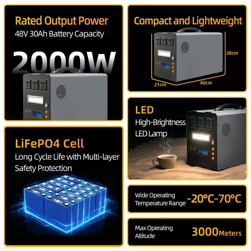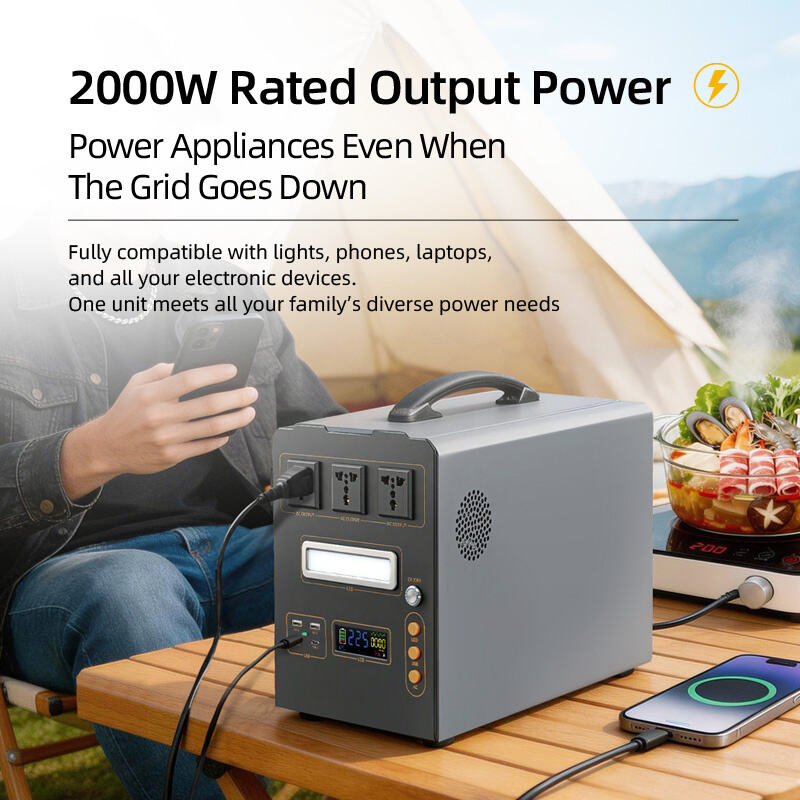 محطة طاقة صغيرة محمولة متعددة الوظائف وعالية الطاقة بقدرة 2000 واط، يمكنها تلبية احتياجات أجهزة متعددة بوحدة واحدة.