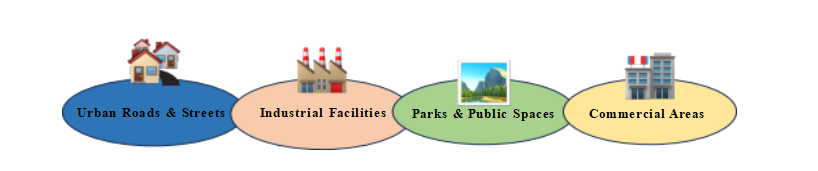 تحافظ مكشاتنا الذاتية على طرق المدن خالية من الغبار وآمنة، وتُحافظ الماكينات الفعّالة على النظافة في المصانع والمستودعات ومراكز الخدمات اللوجستية، وتُستخدم حلول التنظيف الذكية في مراكز التسوق والساحات ومواقف السيارات والمجمعات المكتبية، وتضمن آلاتنا الصديقة للبيئة نظافة الحدائق والمسارات ومناطق الراحة العامة الخارجية الأخرى.