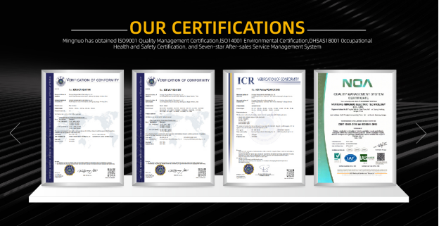 تلتزم Mingnuo بالجودة والسلامة والمسؤولية البيئية، وتملك الشهادات التالية:
